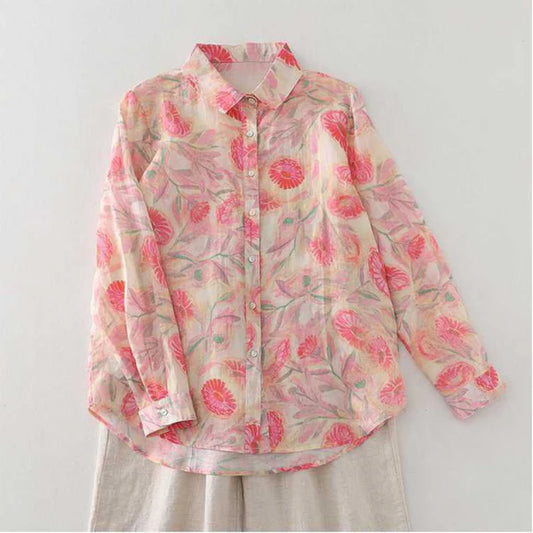 Vintage Floral Sheer Button-Up Shirt– Lightweight Long Sleeve Spring Shirt
