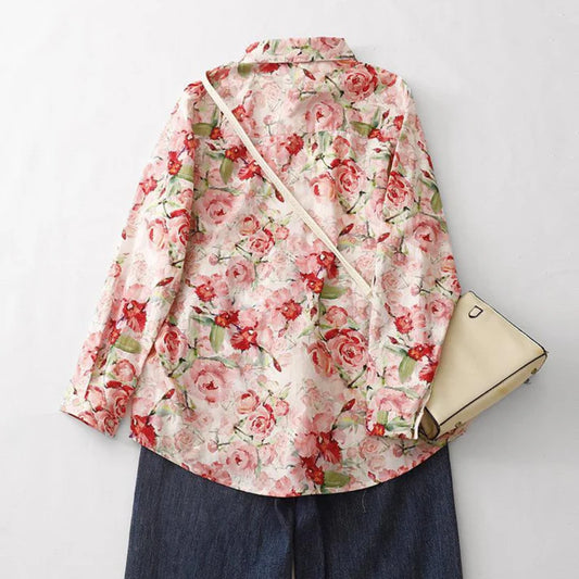 Rose Bloom Cotton Shirt – Elegant Floral Print, Full Sleeve Casual Wear